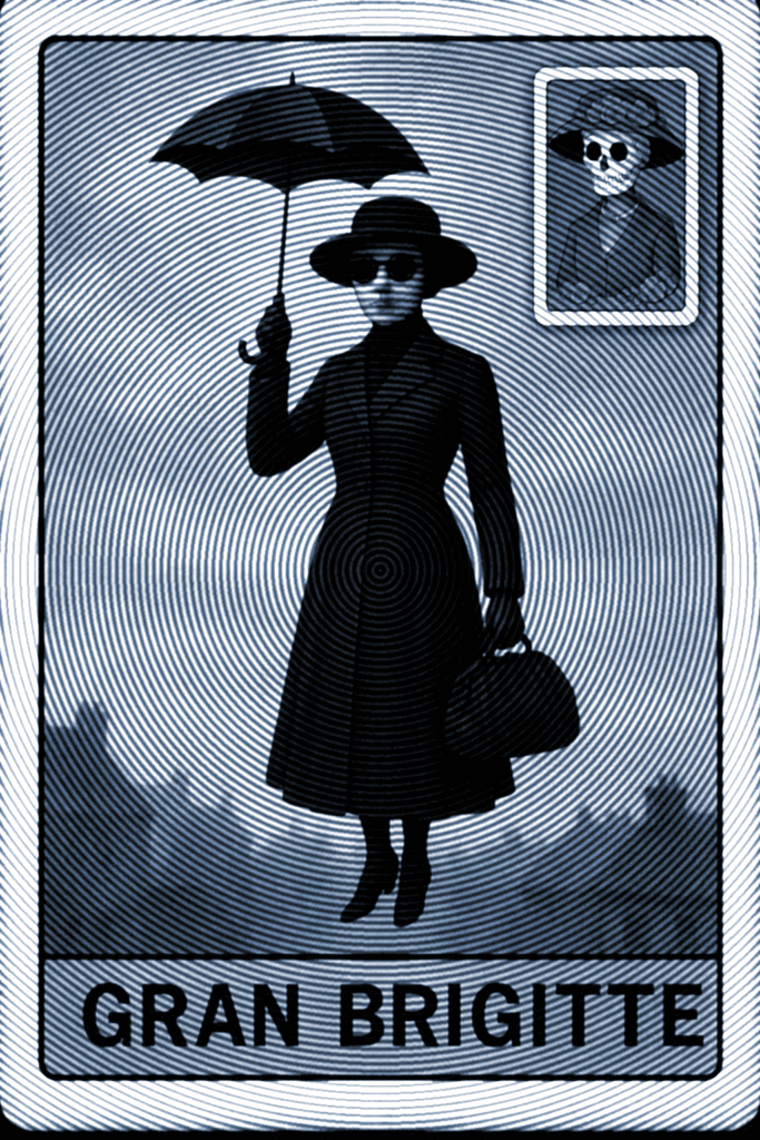 Look to the horizon, and you will make out a strangely eccentric figure appearing as the wind changes direction East. Formidable in her Edwardian nanny strictures; armed with ambulatory umbrella and an ominous carpet bag of tricks; she floats, feet serenely poised in decorous balletic first position—a meteorological spell, no doubt— as she drifts over the rooftops of the metropolis, arriving from the direction of the East. Her name is Mary Poppins, but she is also a whirlwind goddess of storm—Oya in Yoruba mythology, for example. Or Grande Brigitte of Haitian vodoun, forbidding grand dame of the twilight terraced cemeteries and crossroads, a legislator with a whiff of iridescence, a shadow Queen Victoria—proper, formidable, but also mercurial. A little scary in fact…
